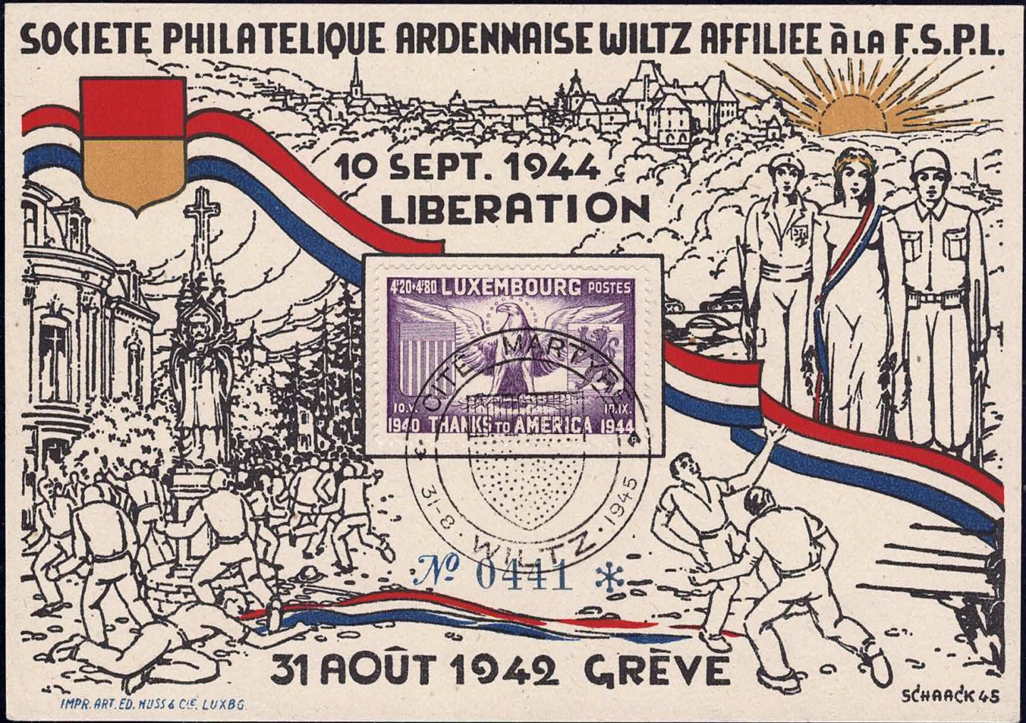 1945 Carte Commémorative 2e guerre mondiale, Grève Wiltz 1942