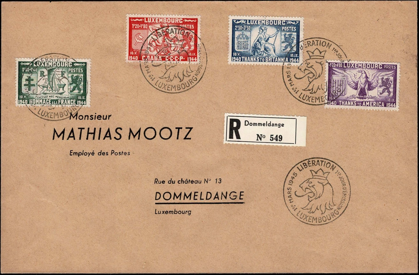 1945 Lettre Recommandé Série Libération 2e guerre mondiale