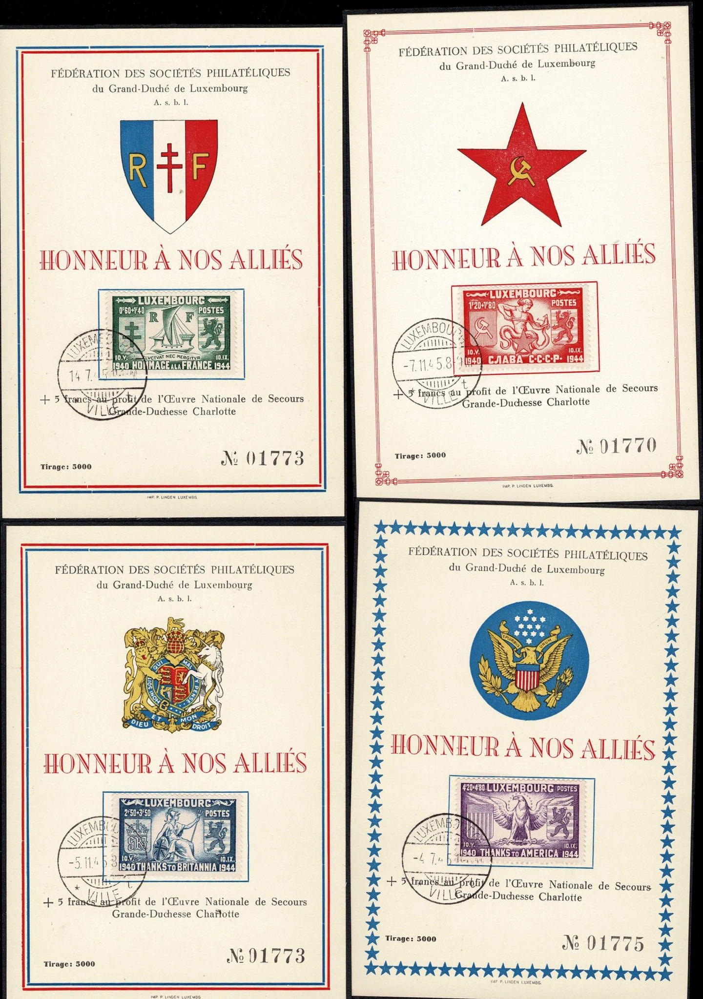 4 Cartes Commémoratives Série Libération 2e guerre mondiale